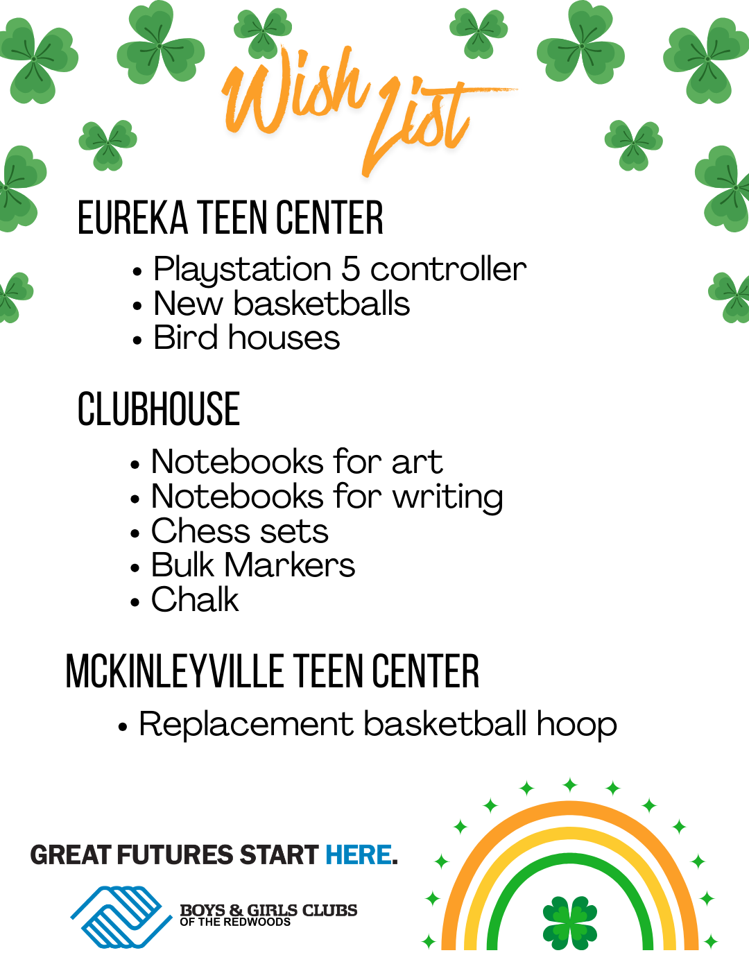 This holiday season, your gift to Boys & Girls Club of the Redwoods helps meet the real, everyday needs of kids in this community – so they can rise, lead and thrive. If we give today’s young people what they need, they will become the leaders, innovators, and problem-solvers of tomorrow.